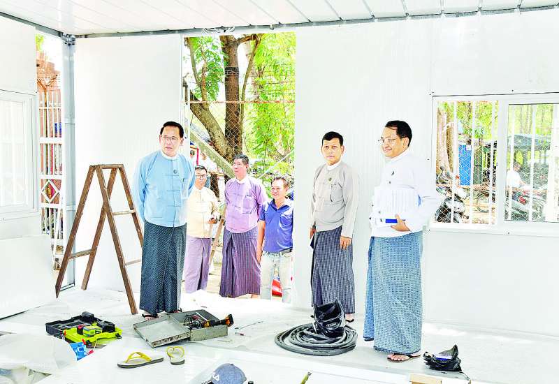 ပြန်ကြားရေးဝန်ကြီးဌာန ဝန်ထမ်းများ နေထိုင်နိုင်ရန် Container House များ နေရာချထားမည့်မြေနေရာ၊ Prefabri-cated Office များ တပ်ဆင်နေမှုနှင့် တည်ဆောက်ထားသည့် ယာယီအဆောင်များ၌ ဝန်ထမ်းများ နေထိုင်နေမှုအခြေအနေများနှင့် စပ်လျဉ်း၍ ယနေ့နံနက်ပိုင်းတွင် ယာယီရှင်းလင်းဆောင်၌ ပြန်ကြားရေးဝန်ကြီးဌာန ပြည်ထောင်စုဝန်ကြီး ဦးမောင်မောင်အုန်းအား အမြဲတမ်းအတွင်းဝန် ဦးဝင်းကျော်အောင်က ရှင်းလင်းတင်ပြသည်။