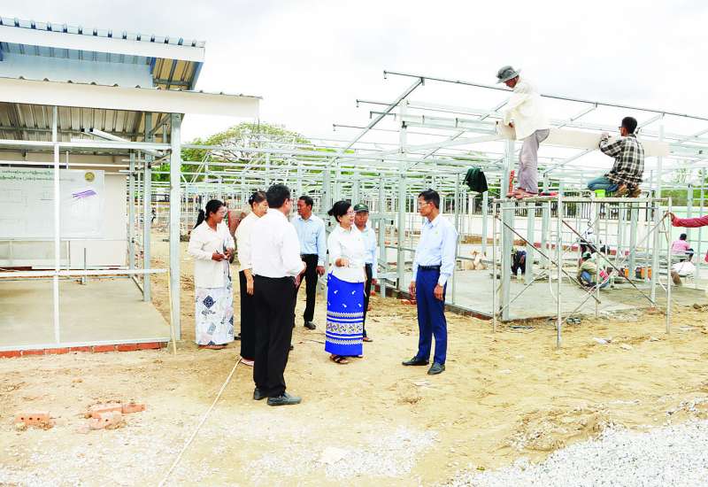 သမဝါယမနှင့်ကျေးလက်ဖွံ့ဖြိုးရေးဝန်ကြီးဌာန ပြည်ထောင်စုဝန်ကြီး ဦးလှမိုးသည် ညွှန်ကြားရေးမှူးချုပ်များနှင့်အတူ ယနေ့နံနက်ပိုင်းက ငလျင်ဒဏ်သင့်ခဲ့သည့် ဝန်ထမ်းများ ယာယီဘာရှာလိုင်းခန်းများတွင် ပြောင်းရွှေ့နေထိုင်မှုအခြေအနေများနှင့် ယာယီဘာရှာလိုင်းခန်းများ တည်ဆောက်နေမှုအခြေအနေကို ကြည့်ရှုစစ်ဆေးသည်။