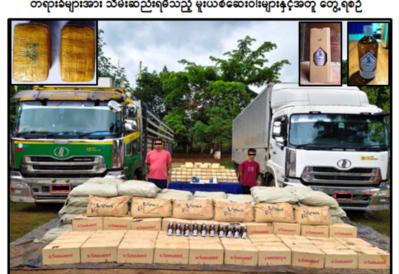 ဝေါမြို့နယ်နှင့် တပ်ကုန်းမြို့တို့၌ ငွေကျပ် ၁ ဒသမ ၅ ဘီလီယံ ကျော်တန်ဖိုးရှိ စိတ်ကြွရူးသွပ်ဆေးပြား ၁၀ သိန်းနှင့် ဆေးခြောက် ၂ ဒသမ ၃ ကီလို ဖမ်းဆီးရမိခဲ့ကြောင်း မြန်မာနိုင်ငံရဲတပ်ဖွဲ့မှ သိရသည်။