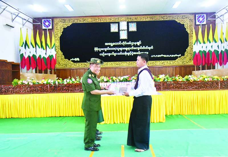ပဲခူးတိုင်းဒေသကြီး တပ်နယ်များအလိုက် အသစ်ဖွဲ့စည်းထားရှိသည့် ပြည်သူ့စစ်(ဌာနေ)တပ်ဖွဲ့ဝင်များအား လက်နက်တပ်ဆင်အပ်နှင်းခြင်းကို ယနေ့နံနက်ပိုင်းတွင် တောင်ပိုင်းတိုင်းစစ်ဌာနချုပ်၊ အေးချမ်းဖြိုးခန်းမ၌ပြုလုပ်ရာ ကာကွယ်ရေးဦးစီးချုပ်ရုံး(ကြည်း)မှ ဒုတိယဗိုလ်ချုပ်ကြီး ဖုန်းမြတ်၊ တောင်ပိုင်းတိုင်းစစ်ဌာနချုပ် တိုင်းမှူး ဗိုလ်ချုပ်ကြည်သိုက်နှင့် တာဝန်ရှိသူများ တက်ရောက်ကြသည်။