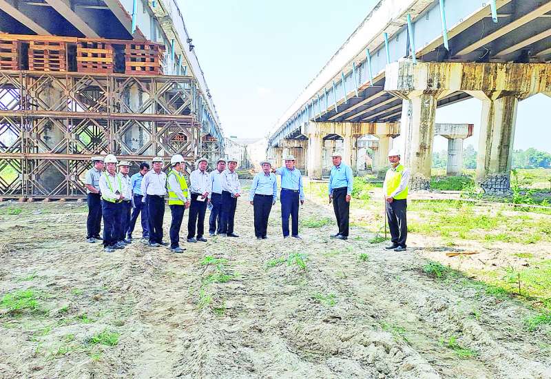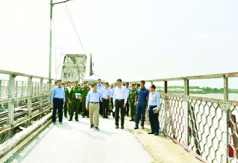 ဆောက်လုပ်ရေးဝန်ကြီးဌာန ပြည်ထောင်စုဝန်ကြီး ဦးမျိုးသန့်သည် ညွှန်ကြားရေးမှူးချုပ်များနှင့်အတူ ယနေ့တွင် ရန်ကုန်-မန္တလေး အမြန်လမ်းမကြီး (နေပြည်တော် - ရန်ကုန်အပိုင်း) တွင် ငလျင်ဒဏ်ကြောင့် ပျက်စီးသွားသော လမ်း၊ တံတားများအား ဘေးအန္တရာယ်ကင်းရှင်းရေးနှင့် လမ်းပန်းဆက်သွယ်မှုမပြတ်တောက်စေရေးအတွက် ပြန်လည်ပြုပြင်ဆောင်ရွက်နေသည့် အခြေအနေများကို ကွင်းဆင်းကြည့်ရှုစစ်ဆေးသည်။