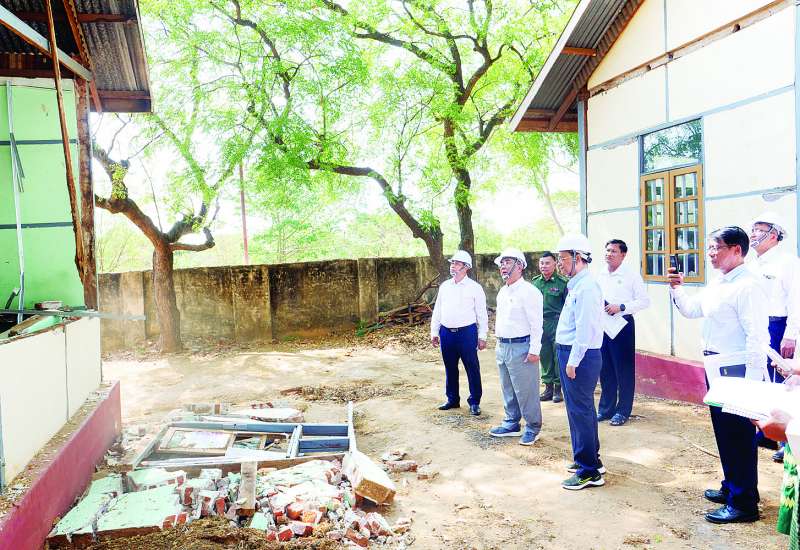အဆောက်အအုံများ ပြန်လည်ပြုပြင်အသုံးပြုရေးနှင့် အသစ်တည်ဆောက်ရေးကြီးကြပ်မှုကော်မတီဥက္ကဋ္ဌ နိုင်ငံတော်စီမံအုပ်ချုပ်ရေးကောင်စီအဖွဲ့ဝင် ဗိုလ်ချုပ်ကြီး မောင်မောင်အေးနှင့် အဖွဲ့ဝင်များသည် ယနေ့နံနက်ပိုင်းတွင် ငလျင်ဒဏ်ကြောင့် ထိခိုက်ပျက်စီးခဲ့ရသည့် လျှပ်စစ်စွမ်းအားဝန်ကြီးဌာန၊ စိုက်ပျိုးရေး၊ မွေးမြူရေးနှင့်ဆည်မြောင်းဝန်ကြီးဌာန၊ ပြန်ကြားရေးဝန်ကြီးဌာနနှင့် သယံဇာတနှင့် သဘာဝပတ်ဝန်းကျင်ထိန်းသိမ်းရေးဝန်ကြီးဌာန၊ မဏိရတနာကျောက်စိမ်းခန်းမတို့သို့ သွားရောက်၍ ယာယီရုံးဖွင့်လှစ်ပြီး ရုံးလုပ်ငန်းဆောင်ရွက်မှုအခြေအနေများကို စစ်ဆေးခဲ့ကြောင်း သိရသည်။