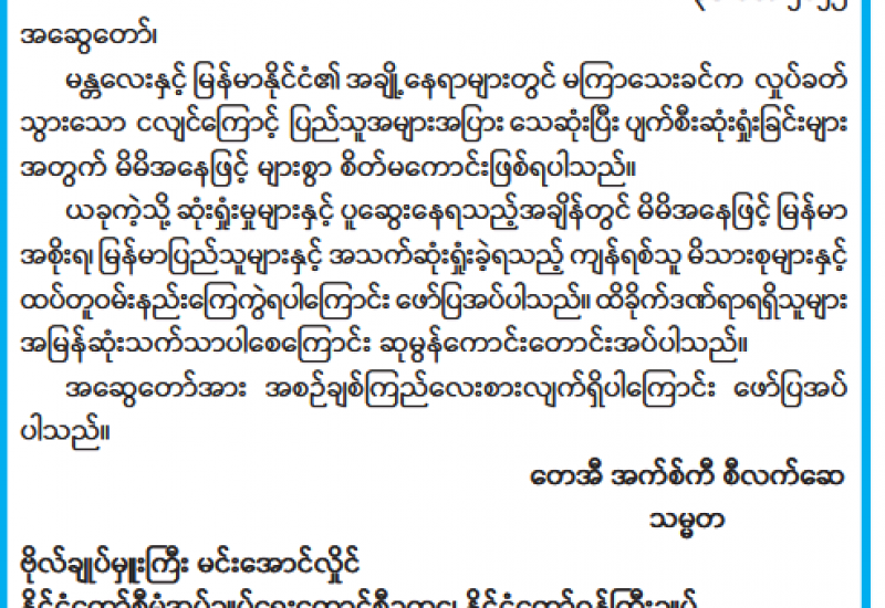 ဘာသာပေါင်းစုံ ချစ်ကြည်ညီညွတ်ရေးအဖွဲ့(ဗဟို) ၏ နှစ်သစ်မင်္ဂလာဆုတောင်းစကားများ