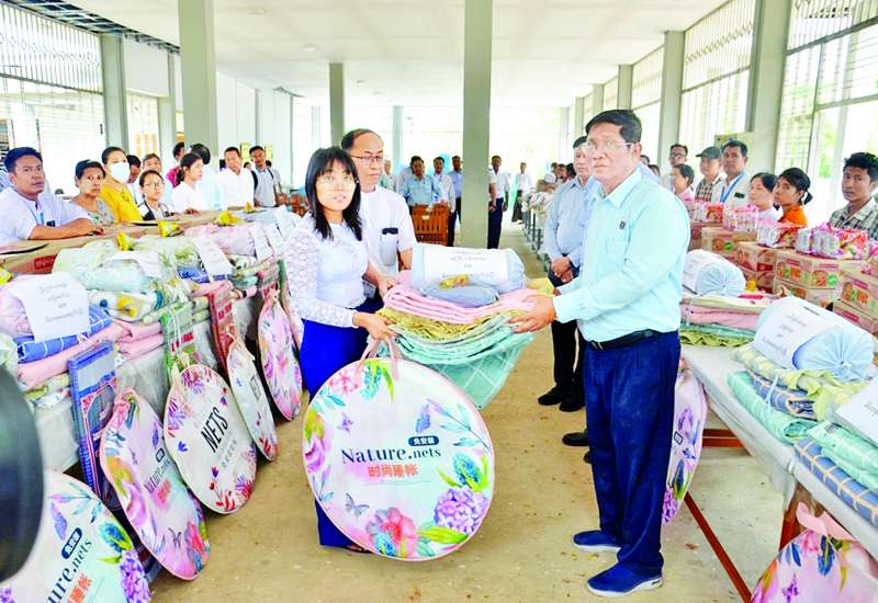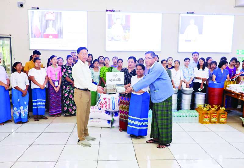 မတ် ၂၈ ရက်က မန္တလေး ငလျင်ဒဏ်ခံစားခဲ့ရသော လူမှုဝန်ထမ်း၊ ကယ်ဆယ်ရေးနှင့် ပြန်လည်နေရာချထားရေးဝန်ကြီးဌာန ဝန်ကြီးရုံး၊ လူမှုဝန်ထမ်းဦးစီးဌာန၊ ဘေးအန္တရာယ်ဆိုင်ရာ စီမံခန့်ခွဲမှုဦးစီးဌာနနှင့် ပြန်လည်ထူထောင်ရေးဦးစီးဌာနတို့မှ ဝန်ထမ်းများအတွက် ရုံးအမှတ် (၂၃) လူမှုဝန်ထမ်း၊ ကယ်ဆယ်ရေးနှင့် ပြန်လည်နေရာချထားရေးဝန်ကြီးဌာန ပြည်ထောင်စုဝန်ကြီး ဒေါက်တာစိုးဝင်းမိသားစုနှင့် အလှူရှင်များ ကလှူဒါန်းထားသည့်အလှူငွေကျပ် ၁၄၁၀၀၀၀၀ဝ အမျိုးသမီးအသုံးအဆောင် ပစ္စည်း၂ ၁ မျိုး၊ စားသုံးဆီ၊ ဆန်၊ ဒန်အိုး၊ စတီး ပန်းကန်၊ စတီးဇွန်း၊ ရေဇလုံ၊ မုန့်မျိုးစုံ၊ ခေါက်ဆွဲခြောက်ထုပ်နှင့် ရေသန့်ကတ်များ ပေးအပ်ခြင်းကို လူမှုဝန်ထမ်း၊ ကယ်ဆယ်ရေးနှင့် ပြန်လည်နေရာချထားရေးဝန်ကြီးဌာန၌ ကျင်းပခဲ့ရာ ပြည်ထောင်စုဝန်ကြီးက ဝန်ကြီးရုံးနှင့် ဦးစီးဌာနသုံးခုတို့မှ တာဝန်ရှိသူများသို့ ပေးအပ်သည်။