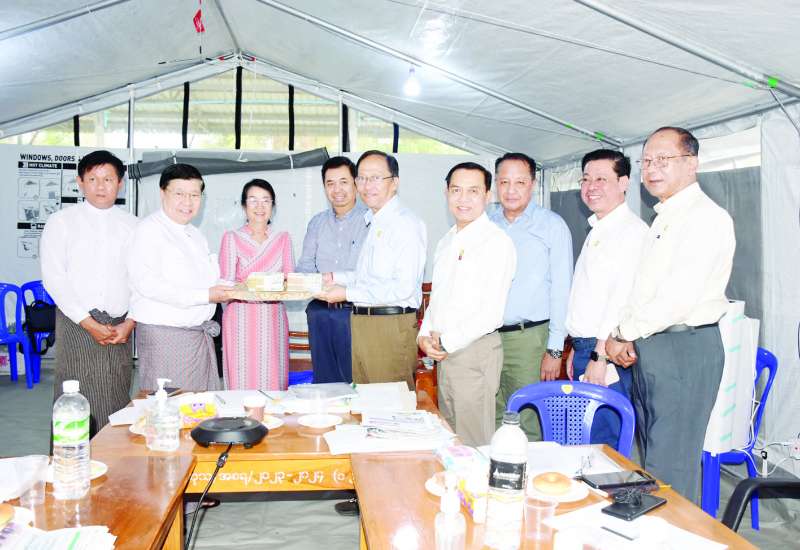 အလုပ်သမားဝန်ကြီးဌာန ပြည်ထောင်စုဝန်ကြီး ဦးချစ်ဆွေသည် ဒုတိယဝန်ကြီး ဦးဝင်းရှိန်နှင့် တာဝန်ရှိသူများနှင့်အတူ ငလျင် ဒဏ်ကြောင့် နေအိမ်အဆောက်အအုံများ ထိခိုက်ပျက်စီးသွားသည့် ဝန်ထမ်းများယာယီနေထိုင်နိုင်ရေး သိပ္ပံနှင့်နည်းပညာဝန်ကြီးဌာန စိုက်ပျိုးရေးခြံအတွင်းယာယီ အဆောက်အအုံများ တည်ဆောက်နေမှုတို့ကို ယနေ့နံနက်ပိုင်းတွင် လှည့်ရှုကြည့်ရှု စစ်ဆေးသည်။
