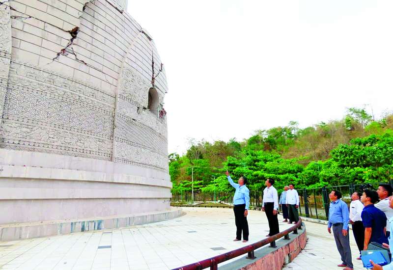 သာသနာရေးနှင့် ယဉ်ကျေးမှုဝန်ကြီးဌာန ပြည်ထောင်စုဝန်ကြီး ဦးတင်ဦးလွင်၊ ဒုတိယဝန်ကြီး ဦးအေးထွန်းနှင့် တာဝန်ရှိသူများသည် ယနေ့ညနေပိုင်းတွင် ငလျင်ဒဏ်ကြောင့် နေပြည်တော် သံဝေဇနိယလေးဌာန (ဖွား၊ ပွင့်၊ ဟော၊ စံ)စေတီတော်များ၏ ထိခိုက်ပျက်စီးမှုများကို လိုက်လံကြည့်ရှုစစ်ဆေးသည်။