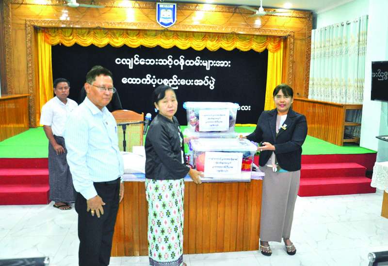 ပညာရေးဝန်ကြီးဌာန ပြည်ထောင်စုဝန်ကြီး ဒေါက်တာညွန့်ဖေသည် ဒုတိယဝန်ကြီး ဒေါက်တာဇော်မြင့် နှင့်ဦးနေမျိုးလှိုင်၊ ညွှန်ကြားရေးမှူးချုပ်များ၊ ဒုတိယအမြဲတမ်းအတွင်းဝန်များ၊ ဒုတိယညွှန်ကြားရေးမှူးချုပ်များနှင့်အတူ ယနေ့မွန်းလွဲပိုင်းက နေပြည်တော် ပညာရေးဝန်ကြီးဌာန ရုံးအမှတ် (၁၃) ရှိ အစည်းအဝေးခန်းမ၌ မတ် ၂၈ ရက်တွင် လှုပ်ခတ်ခဲ့သည့် မန္တလေးငလျင်ကြီးဒဏ်သင့် ပညာရေးဝန်ထမ်းများအတွက် အလှူရှင်များ လာရောက်လှူဒါန်းသော အစားအသောက်များနှင့် ထောက်ပံ့ငွေများကို ဦးစီးဌာနအလိုက် ပြန်လည်ဖြန့်ဝေပေးအပ်သည်။