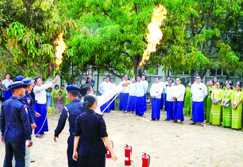 မီးဘေးအန္တရာယ်ကြိုတင်ကာကွယ်ရေး အသိပညာပေးဟောပြောပွဲနှင့် သရုပ်ပြပွဲအခမ်းအနားကို ယနေ့မွန်းလွဲပိုင်းတွင် နေပြည်တော်ရှိ ဟိုတယ်နှင့်ခရီးသွားလာရေးဝန်ကြီးဌာန ကျောက်စိမ်းခန်းမ၌ကျင်းပရာ ဒုတိယဝန်ကြီး ဦးဖြိုးဇော်စိုး ၊ အမြဲတမ်းအတွင်းဝန်၊ ဒုတိယအမြဲတမ်းအတွင်းဝန်နှင့် ဒုတိယညွှန်ကြားရေးမှူးချုပ်များ၊ အရာထမ်း/အမှုထမ်းများ၊ မြန်မာနိုင်ငံ မီးသတ်ဦးစီးဌာနမှတာဝန်ရှိသူများ တက်ရောက်ကြသည်။