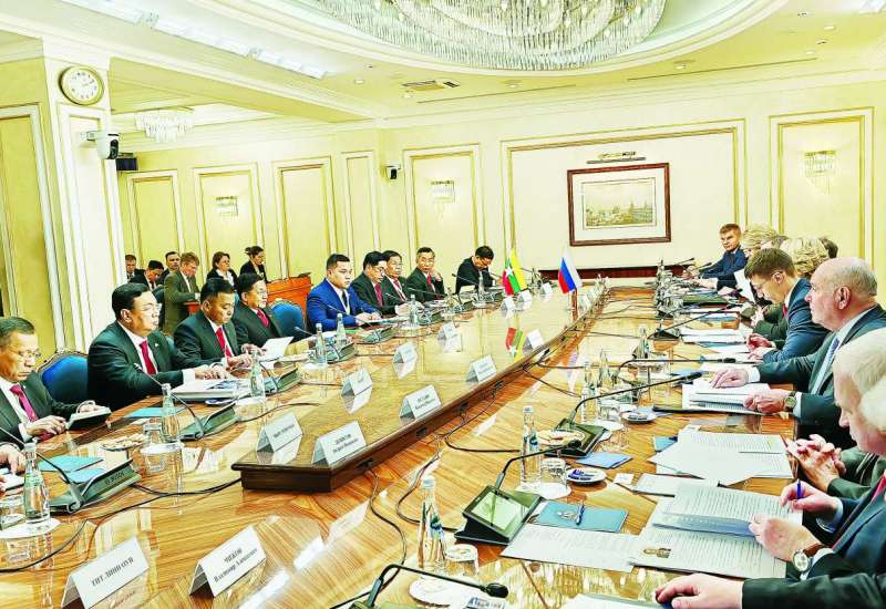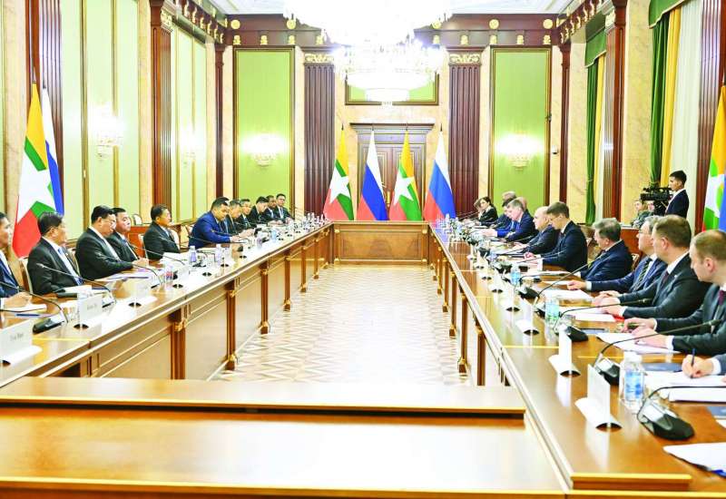 ရုရှားဖက်ဒရေးရှင်းနိုင်ငံ၊ မော်စကိုမြို့သို့ တရားဝင်ချစ်ကြည်ရေးခရီးရောက်ရှိနေသည့် နိုင်ငံတော်စီမံအုပ်ချုပ်ရေးကောင်စီဥက္ကဋ္ဌ နိုင်ငံတော်ဝန်ကြီးချုပ် ဗိုလ်ချုပ်မှူးကြီး မင်းအောင်လှိုင်သည် ယနေ့ဒေသစံတော်ချိန် နေ့လယ်ပိုင်းတွင် ရုရှားဖက်ဒရေးရှင်းနိုင်ငံ အစိုးရအဖွဲ့ဝန်ကြီးချုပ် H.E. Mikhail Vladimirovich Mishustim နှင့် ရုရှားအစိုးရအဖွဲ့ အိမ်တော်အစည်းအဝေးခန်း၌ တွေ့ဆုံဆွေးနွေးသည်။