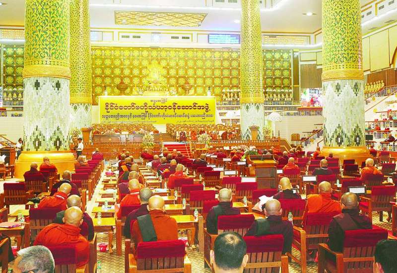 နဝမအကြိမ် နိုင်ငံတော်ဗဟိုသံဃာ့ဝန်ဆောင်အဖွဲ့ ပထမအစည်းအဝေးကို ယနေ့နံနက် ၈ နာရီတွင် ရန်ကုန်တိုင်းဒေသကြီး မရမ်းကုန်းမြို့နယ် သီရိမင်္ဂလာကမ္ဘာအေးကုန်းမြေ ဆဋ္ဌသင်္ဂါယနာ မဟာပါသာဏလိုဏ်ဂူသိမ်တော်ကြီး၌ ကျင်းပသည်။