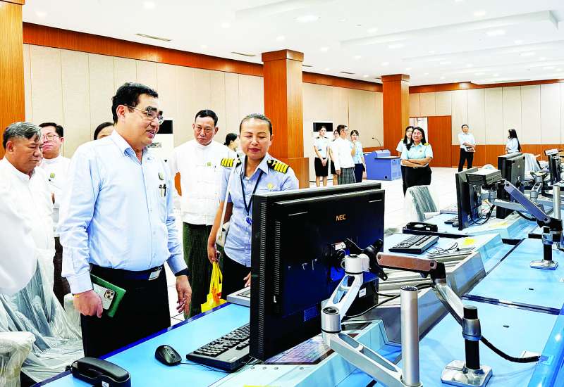 ပို့ဆောင်ရေးနှင့်ဆက်သွယ်ရေးဝန်ကြီးဌာန ဒုတိယဝန်ကြီး ဦးအောင်ကျော်ထွန်းသည် ယနေ့နံနက်ပိုင်းတွင် ရန်ကုန်အပြည်ပြည်ဆိုင်ရာလေဆိပ်ရှိ ဗဟိုလေကြောင်းထိန်းသိမ်းမှု ကွပ်ကဲရေးစင်တာနှင့် လေကြောင်းထိန်းလုပ်ငန်းဆောင်ရွက်နေမှုအခြေအနေများကို သွားရောက်ကြည့်ရှုစစ်ဆေးသည်။