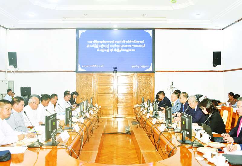 ကျောက်ဖြူအထူးစီးပွားရေးဇုန် ရေနက်ဆိပ်ကမ်းစီမံကိန်း အောင်မြင်စွာအကောင်အထည်ဖော်ဆောင်ရွက် နိုင်ရေးအတွက် မြန်မာဘက်နှင့် CITIC ဘက်မှ နှစ်ဖက်ကြိုတင်ဖြည့်ဆည်းရမည့်အချက်များ (Conditions Precedent)နှင့်စပ်လျဉ်းသည့် လုပ်ငန်းညှိနှိုင်းအစည်းအဝေးကို ယနေ့မွန်းလွဲပိုင်းတွင် နေပြည်တော် ရုံးအမှတ်- ၃ ၊ စီးပွားရေးနှင့်ကူးသန်းရောင်းဝယ်ရေးဝန်ကြီးဌာန အစည်းအဝေးခန်းမ- ၁ ၌ ကျင်းပသည်။