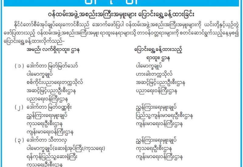 “စိုက်ပျိုးကဏ္ဍတိုးတက်ဖို့ ဘက်ပေါင်းစုံမှကြိုးစားစို့” ခေါင်းစဉ်ဖြင့် စိုက်ပျိုးရေးဦးစီးဌာန၏ (၇)ကြိမ်မြောက် စာတမ်းဖတ်ပွဲကို ဖေဖော်ဝါရီ ၂၄ ရက်မှ ၂၆ ရက်အထိ ကျင်းပခဲ့ပြီး ယနေ့တွင် စာတမ်းဖတ်ပွဲ ဆုချီးမြှင့်ပွဲကို နေပြည်တော်ရှိ စိုက်ပျိုးရေး၊ မွေးမြူရေးနှင့်ဆည်မြောင်းဝန်ကြီးဌာန၌ ကျင်းပသည်။