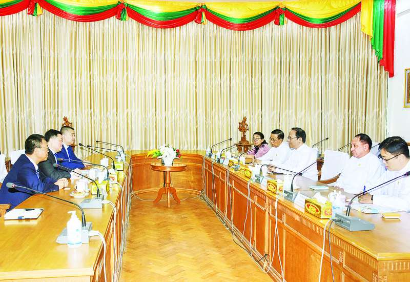 ကျန်းမာရေးဝန်ကြီးဌာန ပြည်ထောင်စုဝန်ကြီး ဒေါက်တာသက်ခိုင်ဝင်းအား ပေကျင်းဟုန်ဖန်းရင်းနှီးမြှုပ်နှံမှုကုမ္ပဏီလီမိတက်မှ Mr. Zhou Xiaofeng ဦးဆောင်သည့် ကိုယ်စားလှယ်အဖွဲ့သည် ယနေ့မွန်းလွဲပိုင်းတွင် ကျန်းမာရေးဝန်ကြီးဌာန အစည်းအဝေးခန်းမ၌ လာရောက်တွေ့ဆုံသည်။