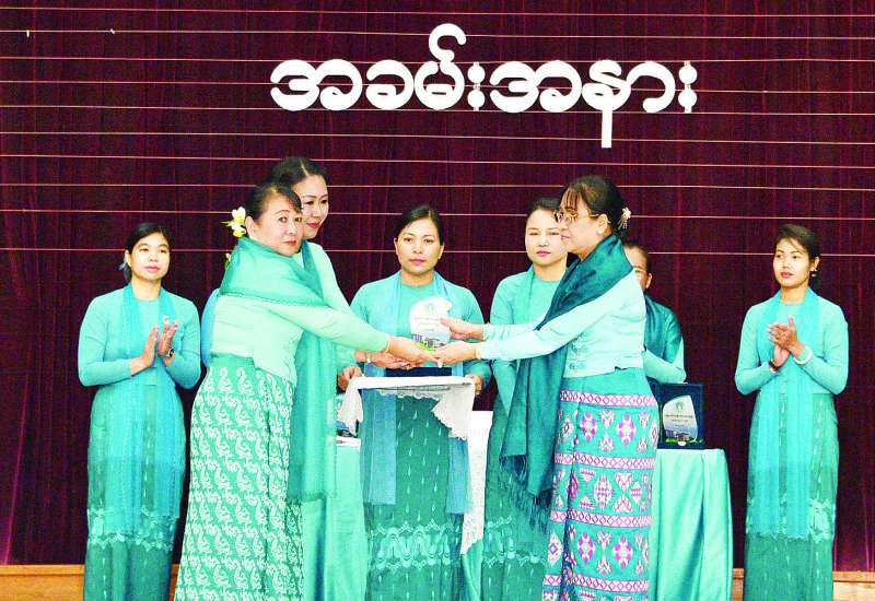 မြန်မာနိုင်ငံ အမျိုးသမီးရေးရာအဖွဲ့ချုပ်၏ (၂၁) ကြိမ်မြောက် နှစ်ပတ်လည်အစည်းအဝေး ဖွင့်ပွဲအခမ်းအနားကို ယနေ့နံနက်ပိုင်းတွင် နေပြည်တော်ရှိ မြန်မာနိုင်ငံ အမျိုးသမီးရေးရာအဖွဲ့ချုပ်ရုံး သီရိရတနာခန်းမ၌ကျင်းပရာ နိုင်ငံတော်စီမံအုပ်ချုပ်ရေးကောင်စီဥက္ကဋ္ဌ နိုင်ငံတော်ဝန်ကြီးချုပ်၏ ဇနီး မြန်မာနိုင်ငံ အမျိုးသမီးရေးရာအဖွဲ့ချုပ် ဂုဏ်ထူးဆောင်နာယက ဒေါ်ကြူကြူလှ တက်ရောက်ချီးမြှင့်သည်။