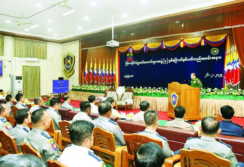 မြန်မာနိုင်ငံ ရဲမှုထမ်းဟောင်းများအဖွဲ့ (၃) နှစ်မြောက် နှစ်ပတ်လည်အခမ်းအနားကို ယနေ့မွန်းလွဲပိုင်းတွင် နေပြည်တော် မြန်မာနိုင်ငံရဲတပ်ဖွဲ့ဌာနချုပ် အရိန္ဒမာခန်းမ၌ ကျင်းပပြုလုပ်ရာ ပြည်ထဲရေးဝန်ကြီးဌာန ပြည်ထောင်စုဝန်ကြီး ဒုတိယဗိုလ်ချုပ်ကြီး ထွန်းထွန်းနောင် တက်ရောက်အမှာစကား ပြောကြားသည်။
