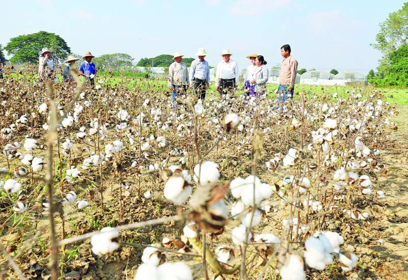 စိုက်ပျိုးရေး၊မွေးမြူရေးနှင့်ဆည်မြောင်းဝန်ကြီးဌာန ပြည်ထောင်စုဝန်ကြီး ဦးမင်းနောင်သည် ယနေ့မွန်းလွဲပိုင်းတွင် နေပြည်တော် ပျဉ်းမနားရှိ စိုက်ပျိုးရေးနှင့်မွေးမြူရေးသိပ္ပံကျောင်းဝင်းအတွင်း မျိုးယှဉ်ပြိုင်စမ်းသပ်စိုက်ပျိုးထားသည့် ချည်မျှင်ရှည်ဝါစိုက်ခင်းကို ကြည့်ရှုစစ်ဆေးသည်။
