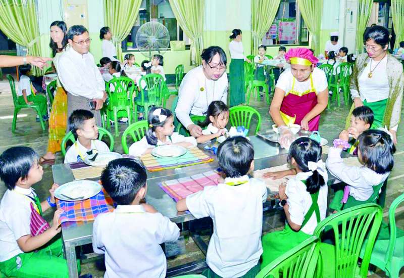 ရန်ကုန်တိုင်းဒေသကြီး ဒဂုံမြို့နယ် အမှတ်(၁)အခြေခံပညာအထက်တန်းကျောင်း၌ ပညာသင်ကြားလျက်ရှိသည့် Grade-1 ကျောင်းသား ကျောင်းသူ ၁၅၄ ဦးအား ကျောင်းတွင်းအာဟာရကျွေးမွေးခြင်း အစီအစဉ်ကို ယနေ့မွန်းလွဲပိုင်းတွင် အ.ထ.က(၁)ဒဂုံ ဒဂုံသီရိခန်းမ၌ ပြုလုပ်ပြီး ကျောင်းသား ကျောင်းသူများအား ထမင်း၊ သီးစုံပဲကုလားဟင်းနှင့် ဖီးကြမ်းငှက်ပျောသီးတို့ကို ကျွေးမွေးခဲ့ကြောင်း သိရသည်။