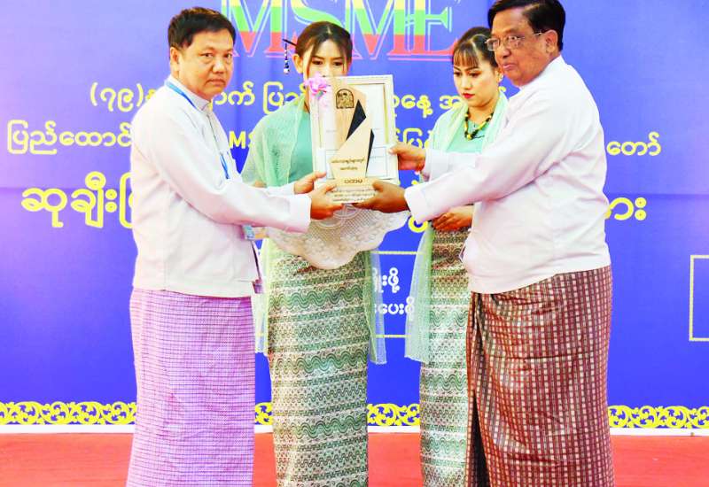 ပြည်ထောင်စုအဆင့် MSME ထုတ်ကုန်ပြပွဲနှင့် ဈေးရောင်းပွဲတော် ဆုချီးမြှင့်ခြင်းနှင့် ပိတ်ပွဲအခမ်းအနားကို ယနေ့ညနေပိုင်းက နေပြည်တော်ရင်ပြင်၌ ကျင်းပကာ MSME လုပ်ငန်းရှင်များအတွက် ဆုအမျိုးအစား ခြောက်မျိုးကို ပေးအပ်ခဲ့ပြီး ဆုရရှိခဲ့ကြသည့် MSME လုပ်ငန်းရှင်များနှင့် တွေ့ဆုံမေးမြန်းခဲ့သည်များကို ဖော်ပြအပ်ပါသည် -