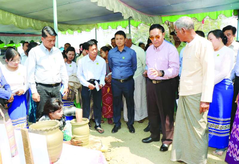 သမဝါယမနှင့်ကျေးလက်ဖွံ့ဖြိုးရေးဝန်ကြီးဌာန ပြည်ထောင်စုဝန်ကြီး ဦးလှမိုးသည် တာဝန်ရှိသူ များနှင့်အတူ ယနေ့နံနက်ပိုင်းက ပဲခူးတိုင်းဒေသကြီး ပန်းတောင်းမြို့ ဖောင်းကန်ရပ်ကွက်၌ ရွှေအိုးစက်မှုလက်မှုကုန်ထုတ်သမဝါယမအသင်းမှ အိုးလုပ်ငန်းလုပ်ကိုင်သော သမဝါယမအသင်းသားများ၊ ဒေသခံတောင်သူများနှင့် တွေ့ဆုံသည်။