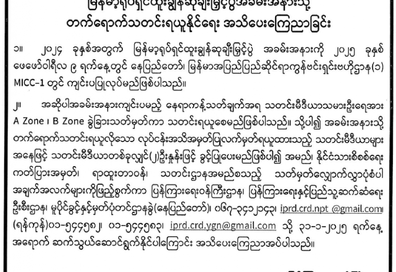 ရန်ကုန်မြို့နှင့် မန္တလေးမြို့အတွက် ရည်ညွှန်းလက်ကားဈေးနှုန်းများနှင့် ပြည်ထောင်စုနယ်မြေ နေပြည်တော်၊ တိုင်းဒေသကြီး/ပြည်နယ် မြို့တော်များအတွက် ရည်ညွှန်းလက်လီဈေးနှုန်းများ