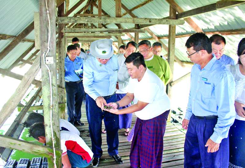 စိုက်ပျိုးရေး၊ မွေးမြူရေးနှင့်ဆည်မြောင်းဝန်ကြီးဌာန ဒုတိယဝန်ကြီး ဒေါက်တာအောင်ကြီးသည် ယမန်နေ့က ကျောက်တန်းမြို့နယ် သီတာမြိုင်ရပ်ကွက်ရှိ နေကြာပန်းကဏန်းပျော့မွေးမြူရေး ကုမ္ပဏီလီမိတက်၏ ကဏန်းပျော့မွေးမြူရေးကန် ၂၅ ကန်၌ တစ်နှစ်လျှင် ကဏန်းပျော့တန်ချိန် ၂၀၀ ခန့်ထုတ်လုပ်၍ ပြည်တွင်းရှိ ဟိုတယ်နှင့်စားသောက်ဆိုင်များသို့ တင်ပို့ဖြန့်ဖြူးရောင်းချနေမှုနှင့် စွန့်ပစ်ပစ္စည်းများဖြစ်သည့် အရေလဲထားသော ကဏန်းအရေခွံ၊ ကဏန်းအသေတို့မှ ကဏန်းအမိုင်နိုအော်ဂဲနစ် သဘာဝမြေဩဇာများ ထုတ်လုပ်နေမှုကို ကြည့်ရှုစစ်ဆေးပြီး ပုဂ္ဂလိကရင်းနှီးမြှုပ်နှံမှုနှင့် ထုတ်လုပ်မှု အရည်အသွေးမြှင့်တင်နိုင်ရေးဆိုင်ရာများကို ဆွေးနွေးမှာကြားသည်။