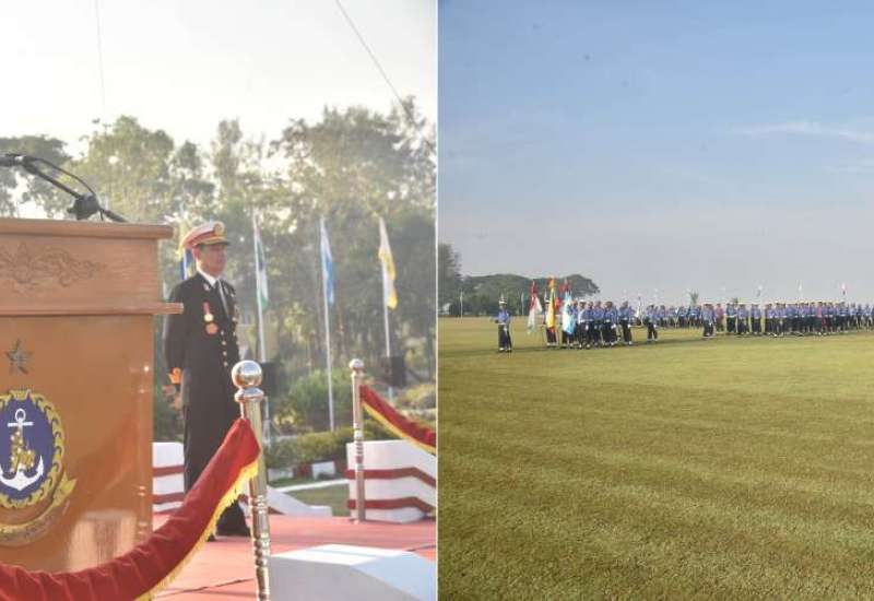 တပ်မတော်(ရေ) အရာရှိငယ်(စီမံခန့်ခွဲရေး)သင်တန်းအမှတ်စဉ်(၈၄)နှင့် တပ်မတော်(ရေ) အရာရှိငယ်(အင်ဂျင်နီယာ)သင်တန်းအမှတ်စဉ်(၅၈) သင်တန်းဆင်းဂုဏ်ပြုစစ်ရေးပြ အခမ်းအနားကို ယနေ့နံနက်ပိုင်းတွင် သန်လျင်တပ်နယ်ရှိ ရေတပ်လေ့ကျင့်ရေးဌာနချုပ် စစ်ရေးပြကွင်း၌ကျင်းပရာ နိုင်ငံတော်စီမံအုပ်ချုပ်ရေးကောင်စီဥက္ကဋ္ဌ တပ်မတော်ကာကွယ်ရေးဦးစီးချုပ်ကိုယ်စား ကာကွယ်ရေးဦးစီးချုပ်(ရေ) ဗိုလ်ချုပ်ကြီး ထိန်ဝင်း တက်ရောက်မိန့်ခွန်းပြောကြားသည်။