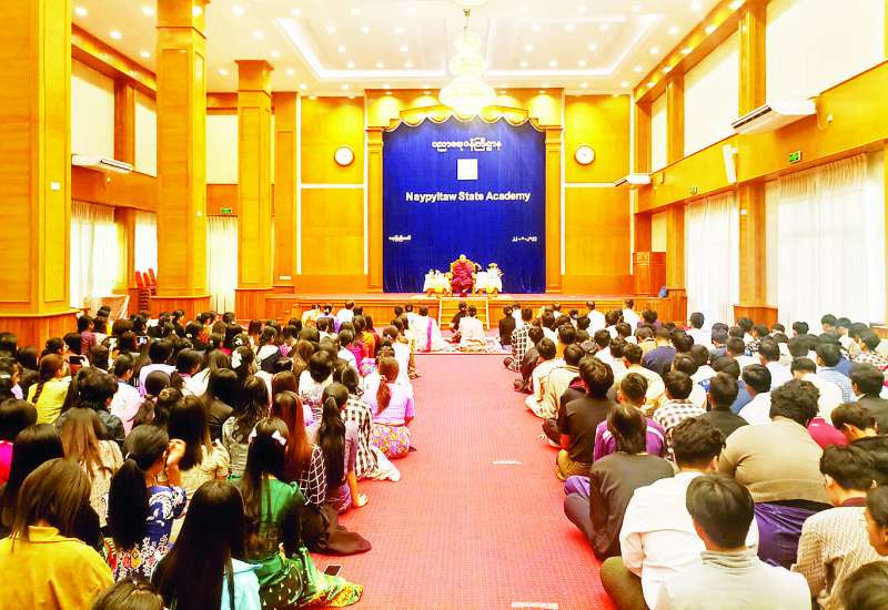 အပြည်ပြည်ဆိုင်ရာ ထေရဝါဒဗုဒ္ဓသာသနာပြုတက္ကသိုလ် ပါမောက္ခချုပ်ဆရာတော် ဒေါက်တာဘဒ္ဒန္တဆေကိန္ဒထံမှ Naypyitaw State Academy မှ ဆရာ ဆရာမများ၊ ကျောင်းသား ကျောင်းသူများ ဩဝါဒခံယူပွဲအခမ်းအနားကို ယနေ့နံနက် ၉ နာရီခွဲတွင် Naypyitaw State Academy စုပေါင်းခန်းမ၌ ကျင်းပသည်။