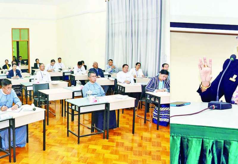 နိုင်ငံ့ဝန်ထမ်းအကြီးအမှူးများအတွက် ဥပဒေအသိပညာပြန့်ပွားရေးသင်တန်းအမှတ်စဉ်(၅)ကို ဇန်နဝါရီ ၈ ရက်မှ မတ် ၂၈ ရက်အထိ ဥပဒေရေးရာဝန်ကြီးဌာန ဥပဒေအသိပညာပြန့်ပွားရေးသင်တန်းကျောင်း၌ ဖွင့်လှစ်လျက်ရှိရာ ပြည်ထောင်စုဝန်ကြီးများ၊ အဂတိလိုက်စားမှုတိုက်ဖျက်ရေးကော်မရှင်ဥက္ကဋ္ဌ၊ နိုင်ငံတော်ဖွဲ့စည်းပုံအခြေခံဥပဒေဆိုင်ရာခုံရုံးအဖွဲ့ဝင်များ၊ ပြည်ထောင်စုတရားလွှတ်တော်ချုပ် တရားသူကြီး၊ ပြည်ထောင်စုရာထူးဝန်အဖွဲ့ဝင်နှင့် ဥပဒေရေးရာဝန်ကြီးဌာနအောက်ရှိ ဦးစီးဌာနများမှ ညွှန်ကြားရေးမှူးချုပ်များနှင့် ဘာသာရပ်ဆိုင်ရာကျွမ်းကျင်ပညာရှင်များက သက်ဆိုင်ရာဘာသာရပ်များအလိုက် ဆွေးနွေးပို့ချလျက်ရှိသည်။