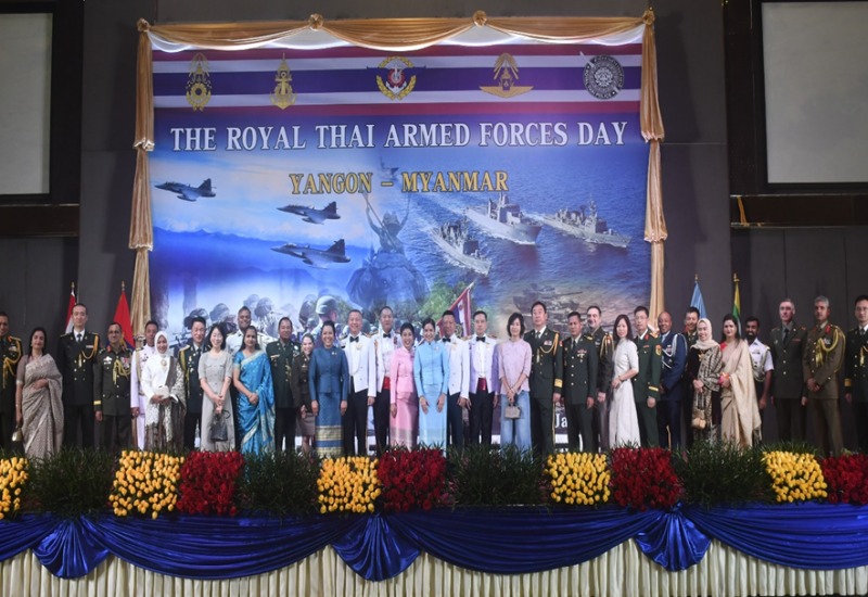 ထိုင်းဘုရင့်တပ်မတော်နေ့ အထိမ်းအမှတ်အခမ်းအနားကို ဇန်နဝါရီလ ၂၀ ရက်နေ့ညပိုင်းတွင် ရန်ကုန်မြို့၊ Novotel Hotel ၌ကျင်းပရာ ရန်ကုန်တိုင်းစစ်ဌာနချုပ်တိုင်းမှူး ဗိုလ်ချုပ်ဇော်ဟိန်း၊ ထိုင်းနိုင်ငံသံအမတ်ကြီး H.E. Mr.Mongkol Visitstump ၊ (ကြည်း၊ ရေ၊ လေ၊ ရဲ) စစ်သံမှူးများ၊ တာဝန်ရှိသူများနှင့် ဖိတ်ကြားထားသည့်ဧည့်သည်တော်များ တက်ရောက်ကြသည်။