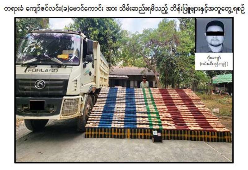 မူးယစ်ဆေးဝါးတားဆီးနှိမ်နင်းရေးရဲတပ်ဖွဲ့မှ တပ်ဖွဲ့ဝင်များပါဝင်သော ပူးပေါင်းအဖွဲ့သည် ဇန်နဝါရီ ၃ ရက် ညနေ ၅ နာရီခွဲက ကလေးဝမြို့နယ်၊ ကလေးဝ-မော်လိုက်သွားကားလမ်း၊ နန်းမော်ကယ်ကျေးရွာအနီးတွင် မော်လိုက်မြို့နယ်၊ နန်းခမ်းပါတ်သစ်တောကြိုးဝိုင်း၊ ပျဉ်းစိုက်ခင်းနေ ကျော်ဇင်လင်း (ခ) မောင်ကောင်း (၂၆) နှစ် မောင်းနှင်လာသော TNI-4 2N-Xxxx FORLAND မော်တော်ယာဉ်အား သတင်းအရ ရပ်တန့်စစ်ဆေးရှာဖွေရာ ယာဉ်ပေါ်မှ ဘိန်းဖြူ ၃၈ ဒသမ ၅ ကီလို (၎င်းဒေသ တန်ဖိုးငွေကျပ် ၁ ဒသမ ၉၂၅ ဘီလီယံ) အား ဖမ်းဆီးရမိခဲ့ပါသည်။