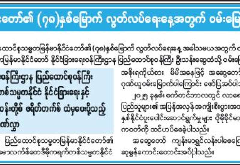ပြည်ထောင်စုသမ္မတမြန်မာနိုင်ငံတော်၏ (၇၈)နှစ်မြောက် လွတ်လပ်ရေးနေ့အတွက် ဝမ်းမြောက်ကြောင်း သဝဏ်လွှာပေးပို့