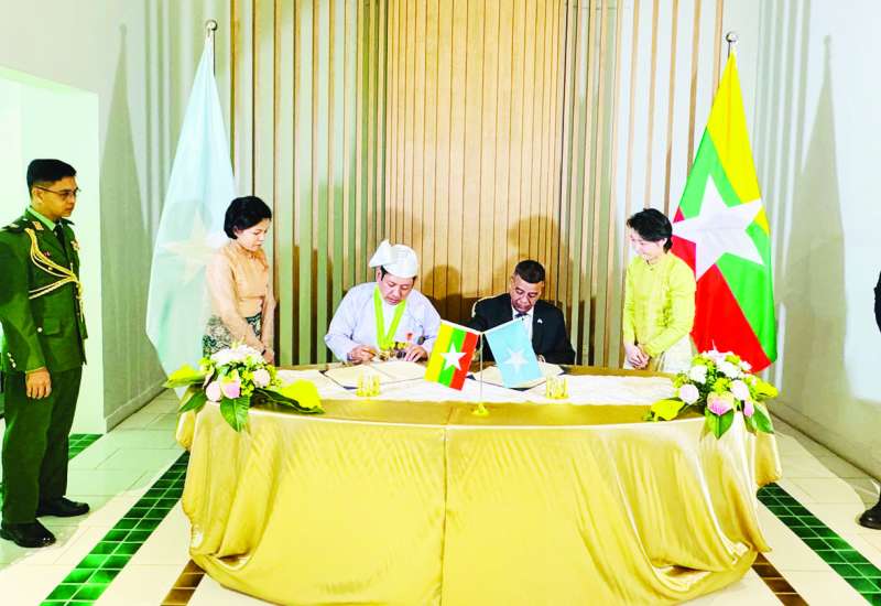 ပြည်ထောင်စုသမ္မတမြန်မာနိုင်ငံတော်နှင့် ဆိုမာလီယာဖက်ဒရယ် သမ္မတနိုင်ငံတို့သည် ကုလသမဂ္ဂပဋိညာဉ်စာတမ်းပါမူကြီးများနှင့် အပြည်ပြည်ဆိုင်ရာ ဥပဒေတို့ကိုအခြေခံပြီး သံတမန်ဆက်ဆံရေးနှင့် ကောင်စစ်ဆက်ဆံရေးဆိုင်ရာ ဗီယင်နာကွန်ဗင်းရှင်းတို့နှင့်အညီ နှစ်နိုင်ငံချစ်ကြည်ရင်းနှီးမှုနှင့် ပူး‌ပေါင်းဆောင်ရွက်မှုတိုးတက်ခိုင်မာစေရန် ဆန္ဒရှိကြသည့် အားလျော်စွာ ၂၀၂၆ ခုနှစ် ဇန်နဝါရီ ၉ ရက်မှစတင်၍ နှစ်နိုင်ငံအကြား သံအမတ်ကြီးအဆင့်ဖြင့် သံတမန်အဆက်အသွယ်ထူထောင်ကြသည်။