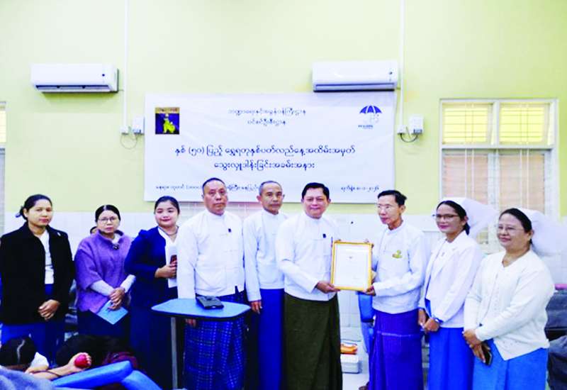 ဘဏ္ဍာရေးနှင့်အခွန်ဝန်ကြီးဌာန ပင်စင်ဦးစီးဌာန၏ နှစ် (၅၀) ပြည့် ရွှေရတုအထိမ်းအမှတ်အဖြစ် ဝန်ထမ်းများသည် နေပြည်တော်ရှိ အထွေထွေရောဂါကုဆေးရုံကြီး (ခုတင်၁၀၀၀) ၌ ယမန်နေ့က စုပေါင်းသွေးလှူဒါန်းသည်။