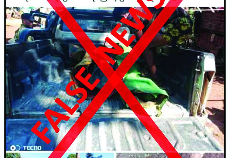 ကယားပြည်နယ်၊ ဒီးမော့ဆိုမြို့၊ အရှေ့ခြမ်းကို လေကြောင်းဖြင့် ပစ်ခတ်တိုက်ခိုက်မှုကြောင့် ပြည်သူ ၃ ဦးသေဆုံးပြီး ၄ ဦး ဒဏ်ရာရရှိကြောင်း မဟုတ်မမှန်သတင်းများကို တရားမဝင်ပြည်ဖျက်မီဒီယာများက လုပ်ကြံရေးသား ဖြန့်ဝေလျက်ရှိကြောင်း တွေ့ရှိရသည်။