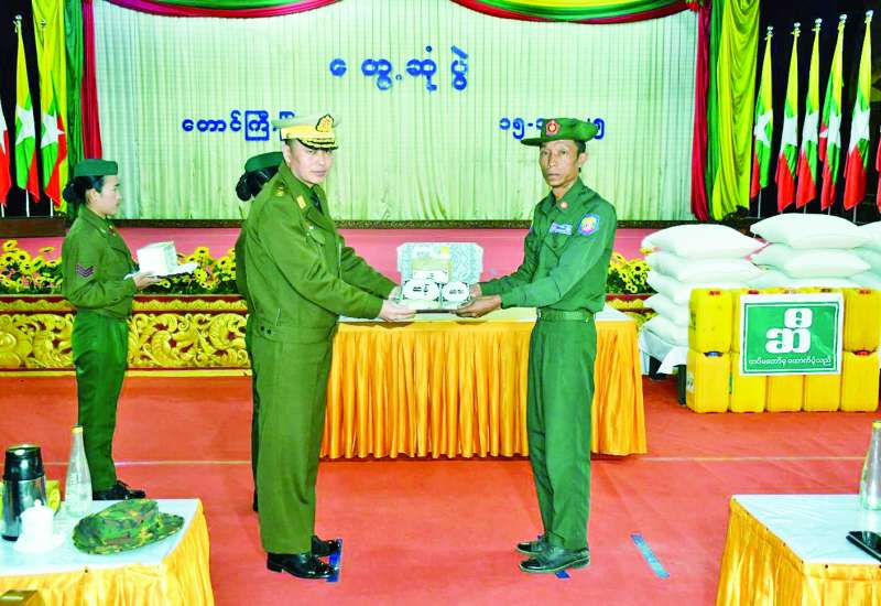 ရှမ်းပြည်နယ်(တောင်ပိုင်း)နှင့် ကယားပြည်နယ်အတွင်းရှိ ပြည်သူ့စစ် (ဌာနေ) တပ်ဖွဲ့ဝင်များအား ယနေ့မွန်းလွဲပိုင်းတွင် အရှေ့ပိုင်းတိုင်းစစ်ဌာနချုပ် တိုင်းမှူးဗိုလ်ချုပ်ဇော်မင်းလတ်နှင့်တာဝန်ရှိသူများက တိုင်းစစ်ဌာနချုပ်သံလွင်ခန်းမ၌ တွေ့ဆုံသည်။