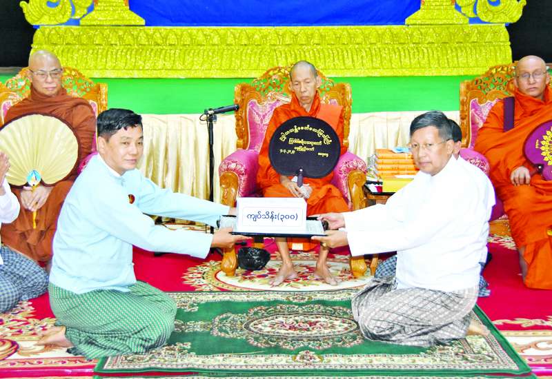 နေပြည်တော်နှင့် တိုင်းဒေသကြီး/ ပြည်နယ်များအတွင်းရှိ ရေဘေးသင့်ဘုန်းတော်ကြီးကျောင်းများအား ပျဉ်းမနားမြို့ မင်္ဂလာဇေယျုံပါဠိတက္ကသိုလ် ကျောင်းတိုက်ပဓာနနာယကဆရာတော် အဂ္ဂမဟာပဏ္ဍိတ အဂ္ဂမဟာသဒ္ဓမ္မဇောတိကဓဇ ဘဒ္ဒန္တဝိမလဗုဒ္ဓိ၊ နေပြည်တော်တိုင်းသံဃနာယကအဖွဲ့ဥက္ကဋ္ဌ သုခဝိဟာရ သရက်ကုန်းကျောင်းတိုက် ပဓာနနာယက ဆရာတော်ဒေါက်တာဘဒ္ဒန္တမုနိကုမာရ၊ ဒက္ခိဏသီရိမြို့နယ် ရန်အောင်မြင်တောရ (မြို့တော်ဝန်) ကျောင်းဆရာတော် ဘဒ္ဒန္တခေမာနန္ဒနှင့် အလှူရှင်များက အလှူငွေ၊ ပဋ္ဌာန်းပါဠိတော်ကျမ်းစာအုပ်နှင့် အရှင်ဂဝမ္ပတိမထေရ် စာအုပ်များလှူဒါန်းခြင်းအခမ်းအနားကို ယနေ့မွန်းလွဲပိုင်းတွင် သာသနာရေးနှင့်ယဉ်ကျေးမှုဝန်ကြီးဌာန ရုံးအမှတ် (၃၁)ရှိ စုပေါင်းအစည်းအဝေးခန်းမ၌ ကျင်းပသည်။