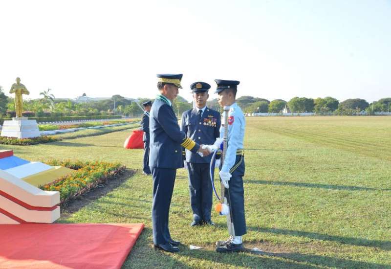 တပ်မတော်(လေ)၏ လေယာဉ်မောင်းသင်တန်း အမှတ်စဉ်(၈၆) ကျောင်းဆင်းတောင်ပံအပ်နှင်းပွဲအခမ်းအနားကို ယနေ့နံနက်ပိုင်းတွင် မိတ္ထီလာမြို့၌ကျင်းပရာ နိုင်ငံတော်စီမံအုပ်ချုပ်ရေးကောင်စီဥက္ကဋ္ဌ တပ်မတော်ကာကွယ်ရေးဦးစီးချုပ်ကိုယ်စား ကာကွယ်ရေးဦးစီးချုပ်(လေ) ဗိုလ်ချုပ်ကြီးထွန်းအောင် တက်ရောက်မိန့်ခွန်းပြောကြားသည်။