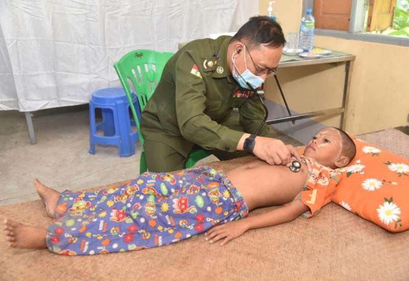 ဧရာဝတီမြစ်ကြောင်းတစ်လျှောက်ရှိ ဒေသခံပြည်သူများအား ကျန်းမာရေးစောင့်ရှောက်မှုလုပ်ငန်းများ ဆောင်ရွက်ပေးရန်အတွက် တပ်မတော်မြစ်တွင်းသွား ဆေးရုံရေယာဉ်(ရွှေပုဇွန်)၊ မြစ်ရေယာဉ်(စကု)တို့နှင့်အတူ လိုက်ပါလာသည့် တပ်မတော်မှ ပါရဂူများ၊ ဆေးမှူးများ၊ သူနာပြုများပါဝင်သော နယ်လှည့်အထူးကုဆေးအဖွဲ့သည် ယနေ့တွင် ဧရာဝတီတိုင်းဒေသကြီး၊ မအူပင်ခရိုင်၊ မအူပင်မြို့နယ်၊ ထနီးကျေးရွာ၊ အောင်ကျိုက္ခမီဘုန်းကြီးကျောင်းရှိ ဓမ္မရတနာဗိမာန်တွင် အခြေပြု၍ အဆိုပါမြို့နှင့် ပတ်ဝန်းကျင်ကျေးရွာများမှ ဒေသခံပြည်သူ ၅၈၃ ဦးအား ကျန်းမာရေးစောင့်ရှောက်မှုလုပ်ငန်းများ ဆက်လက်ဆောင်ရွက်ပေးသည်။
