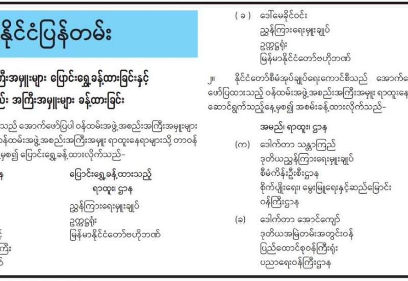 ဝန်ထမ်းအဖွဲ့အစည်းအကြီးအမှူးများ ပြောင်းရွှေ့ခန့်ထားခြင်းနှင့် ဝန်ထမ်းအဖွဲ့အစည်း အကြီးအမှူး များ ခန့်ထားခြင်း