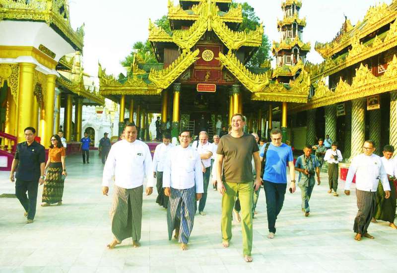 ဘယ်လာရုစ်သမ္မတနိုင်ငံ နိုင်ငံခြားရေးဝန်ကြီး H.E.Mr.Maxim RYZHENKOV ဦးဆောင်သောကိုယ်စားလှယ်အဖွဲ့သည် ရန်ကုန်တိုင်းဒေသကြီးဝန်ကြီးများ၊ နိုင်ငံခြားရေးဝန်ကြီးဌာနနှင့် ရန်ကုန်မြို့အခြေစိုက် ဘယ်လာရုစ်ဂုဏ်ထူးဆောင် ကောင်စစ်ဝန်ရုံးမှ တာဝန်ရှိသူများနှင့်အတူ ယနေ့မွန်းလွဲပိုင်းတွင် ရန်ကုန်မြို့ဗိုလ်ချုပ်စျေးသို့သွားရောက်၍ ရိုးရာလက်မှုပစ္စည်းများ၊ ရိုးရာအဝတ်အထည်များ၊ ရွှေခြည်ငွေခြည်ထိုး လက်ရာပစ္စည်းများ ရောင်းချနေမှုကို လှည့်လည်ကြည့်ရှုလေ့လာကြသည်။