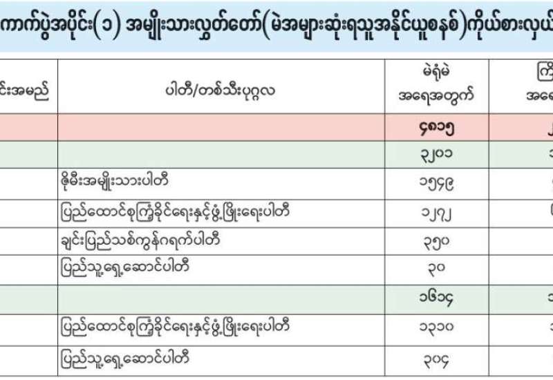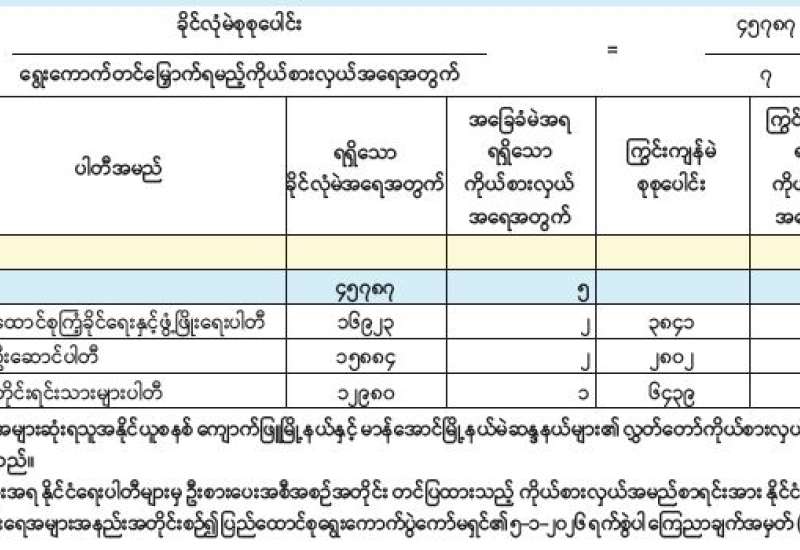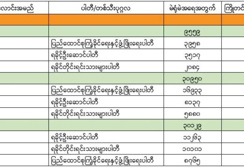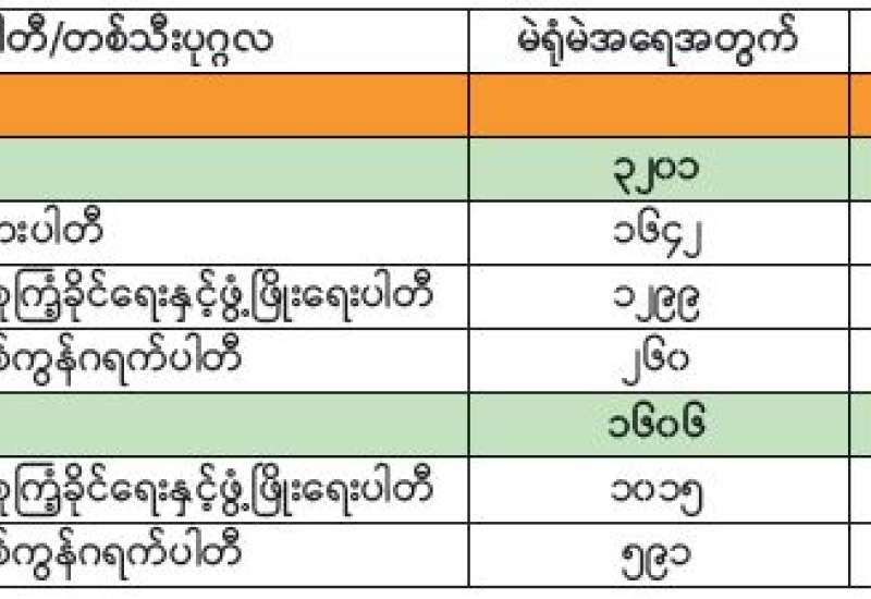 အမျိုးသားလွှတ်တော် (အချိုးကျကိုယ်စားပြုစနစ်)၊ ရခိုင်ပြည်နယ်မဲဆန္ဒနယ်အမှတ် (၂) နိုင်ငံရေးပါတီများ၏ ကိုယ်စားလှယ်လောင်းရရှိမှုအခြေအနေ