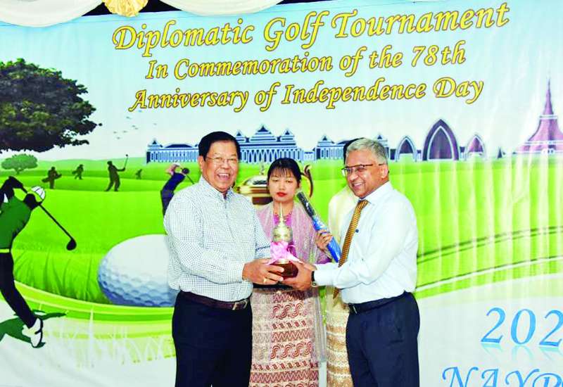 ၂၀၂၆ ခုနှစ် (၇၈) နှစ်မြောက် လွတ်လပ်ရေးနေ့အထိမ်းအမှတ် သံတမန်ဂေါက်သီးရိုက်ပြိုင်ပွဲကို ယနေ့နံနက်ပိုင်းက နေပြည်တော်ရှိ ရေပြာဂေါက်ကွင်း၌ နိုင်ငံခြားရေးဝန်ကြီးဌာနက ကြီးမှူး၍ ကျင်းပရာ နိုင်ငံခြားရေးဝန်ကြီးဌာန ပြည်ထောင်စုဝန်ကြီး၊ ဒုတိယဝန်ကြီးများ၊ ရန်ကုန်မြို့အခြေစိုက် ပြည်ပသံရုံးများမှ သံတမန်များ၊ ပြိုင်ပွဲဝင်အားကစားသမားများနှင့် အထူးဖိတ်ကြားထားသည့် ဧည့်သည်တော်များ ဝင်ရောက်ယှဉ်ပြိုင်ခဲ့ကြသည်။