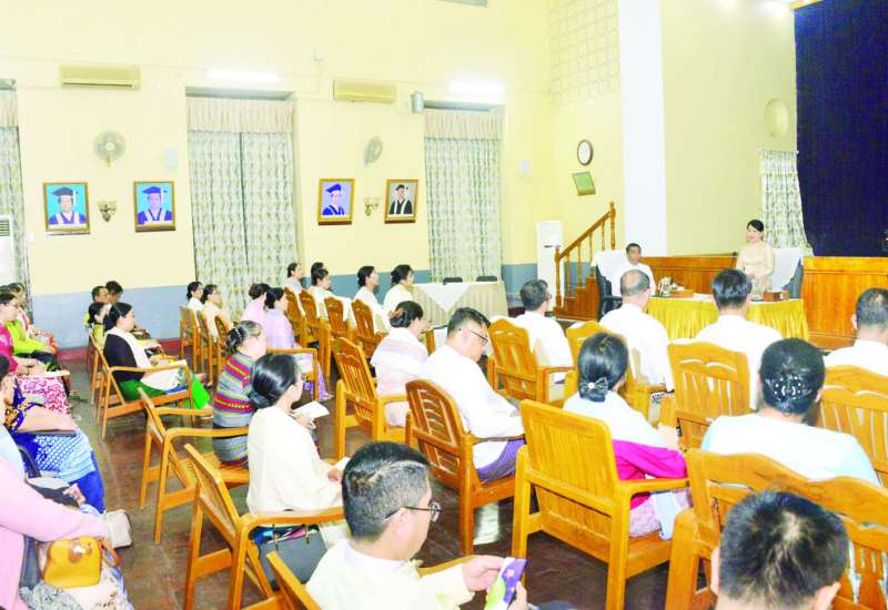 ရန်ကုန်တက္ကသိုလ် သိပ္ပံပွဲခင်း ကျင်းပနိုင်ရေး ရန်ကုန်တက္ကသိုလ် ပါမောက္ခချုပ်၊ ဒုတိယပါမောက္ခချုပ်များ၊ ပါမောက္ခ (ဌာနမှူး) များနှင့်တွေ့ဆုံဆွေးနွေးပွဲကို ယနေ့မွန်းလွဲပိုင်းတွင် ရန်ကုန်တက္ကသိုလ် ဝိဇ္ဇာခန်းမ၌ ကျင်းပရာ ဒုတိယဝန်ကြီး ဦးနေမျိုးလှိုင်၊ ညွှန်ကြားရေးမှူးချုပ်များ၊ ဒုတိယညွှန်ကြားရေးမှူးချုပ်များနှင့် တာဝန်ရှိသူများ တက်ရောက်ကြသည်။