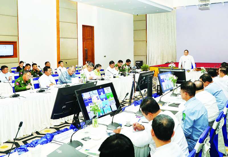 လူငယ်ငြိမ်းချမ်းရေးဖိုရမ် ကျင်းပရေးဦးစီးကော်မတီ၏ ညှိနှိုင်းအစည်းအဝေးကို ယနေ့မွန်းလွဲပိုင်းတွင် နေပြည်တော် M Gallery ဟိုတယ်၌ကျင်းပရာ ကျင်းပရေးဦးစီးကော်မတီဥက္ကဋ္ဌ ပြည်ထောင်စုဝန်ကြီး ဒုတိယဗိုလ်ချုပ်ကြီးရာပြည့်၊ အမျိုးသားစည်းလုံး ညီညွတ်ရေးနှင့် ငြိမ်းချမ်းရေးဖော်ဆောင်မှုညှိနှိုင်းရေးကော်မတီအတွင်းရေးမှူး ဒုတိယဗိုလ်ချုပ်ကြီးမင်းနိုင်နှင့် ကော်မတီဝင်များ၊ ဦးစီးကော်မတီအဖွဲ့ဝင်များဖြစ်ကြသည့် ဒုတိယဝန်ကြီးများ၊ အမြဲတမ်း အတွင်းဝန်များနှင့် ဌာနဆိုင်ရာတာဝန်ရှိသူများ တက်ရောက်ကြပြီး တိုင်းဒေသကြီးနှင့် ပြည်နယ်များမှ လူမှုရေးရာဝန်ကြီးများက Video Conferencing ဖြင့် တက်ရောက်ကြသည်။