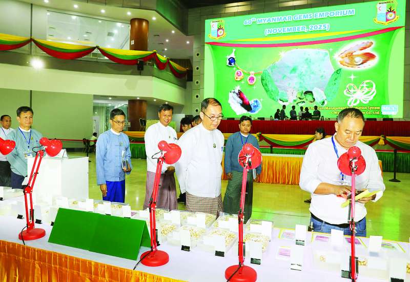 ၂၀၂၅ ခုနှစ် အကြိမ် (၆၀) မြောက် မြန်မာ့ကျောက်မျက်ရတနာပြပွဲ ဒုတိယနေ့ကို ယနေ့နံနက်ပိုင်းတွင် နေပြည်တော်ရှိ မဏိရတနာကျောက်စိမ်းခန်းမ၌ ဆက်လက်ကျင်းပရာ ပြည်တွင်း၊ ပြည်ပ ရတနာကုန်သည်များဖြင့် စည်ကားလျက်ရှိသည်။