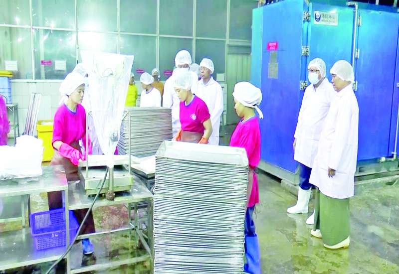 ပုဂ္ဂလိကကဏ္ဍ၏ ငါး၊ ပုစွန်နှင့် ရေထွက်ကုန်များ ပိုမိုတင်ပို့နိုင်ရေးနှင့် နိုင်ငံတကာစျေးကွက် စံချိန်စံညွှန်းမီ အရည်အသွေးမြင့်ထုတ်ကုန်များ တိုးတက်ထုတ်လုပ်နိုင်ရေးအတွက် စိုက်ပျိုးရေး၊ မွေးမြူရေးနှင့် ဆည်မြောင်းဝန်ကြီးဌာနက အားပေးကူညီဆောင်ရွက်ပေးလျက်ရှိရာ ယနေ့နံနက်ပိုင်းတွင် ဒုတိယဝန်ကြီး ဒေါက်တာအောင်ကြီးသည် ရန်ကုန်တိုင်းဒေသကြီး အင်းစိန်မြို့နယ် အနောက်ကြို့ကုန်းရှိ ရတနာသိင်္ဂီ စက်မှုလုပ်ငန်းကုမ္ပဏီလီမိတက်၏ ရေထွက်ပစ္စည်းပြုပြင်အေးခဲခြင်းနှင့် ရေခဲစက်ရုံ၌တန်ချိန် ၁၁ဝဝ ဆံ့ အအေးခန်းဖြင့် ပြင်ပအပ်ကုန်များ လက်ခံဆောင်ရွက်ပေးနေမှု၊ ရတနာသိင်္ဂီစက်မှု လုပ်ငန်းကုမ္ပဏီလီမိတက် (အအေးခန်းစက်ရုံ)မှ ရေချိုငါး၊ ရေငန်ငါးများအေးခဲပြုပြင်ပြီး China၊ Saudi၊ Kuwait၊ UAE နိုင်ငံများသို့ အဓိကတင်ပို့နေမှုနှင့် BAP စနစ်ဖြင့် ဆော်ဒီနိုင်ငံသို့ မွေးမြူရေးငါးများတင်ပို့နိုင်ရေး ဆောင်ရွက်နေမှုများကို ကြည့်ရှုစစ်ဆေးသည်။
