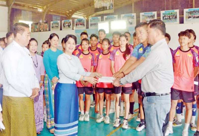 ပညာရေးဝန်ကြီးဌာန ပြည်ထောင်စုဝန်ကြီး ဒေါက်တာချောချောစိန်သည် ဒုတိယဝန်ကြီးဦးနေမျိုးလှိုင်နှင့် ဦးစီးဌာနများမှ ညွှန်ကြားရေးမှူးချုပ်များ၊ Naypyitaw State Academy ခေတ္တပါမောက္ခချုပ်တို့နှင့်အတူ လယ်ဝေးမြို့နယ်ရှိ လေ့ကျင့်ရေးအားကစားကွင်းတွင် (၁၄)ကြိမ်မြောက် အာဆီယံကျောင်းသားအားကစားပြိုင်ပွဲ၌ ပါဝင်ယှဉ်ပြိုင်ရန် လေ့ကျင့်မှုများ ဆောင်ရွက်နေသည့် မြန်မာကျောင်းသားအားကစားအဖွဲ့အား သွားရောက်တွေ့ဆုံ အားပေးသည်။