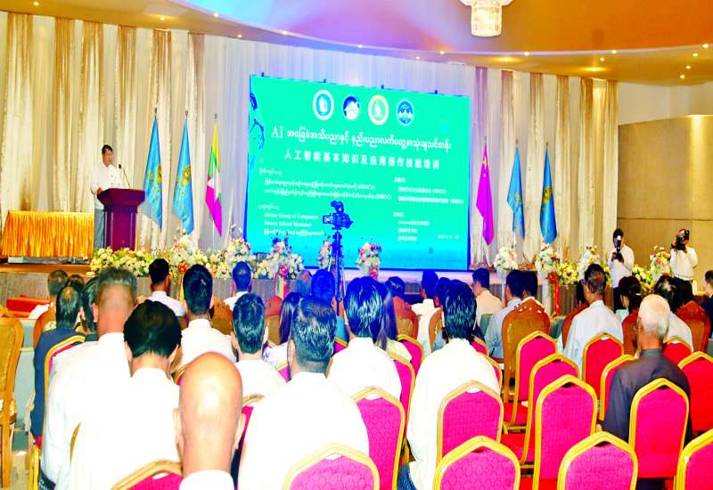 မြန်မာအနုပညာနှင့် ယဉ်ကျေးမှုဖွံ့ဖြိုးတိုးတက်ရေးအသင်း(ဗဟို) ကဦးစီးပြီး တက်ဟုန်းပြည်နယ်ခွဲ ကုန်သည်ကြီးများအသင်း မြန်မာနိုင်ငံကိုယ်စားလှယ်ရုံးနှင့် တက်ဟုန်းပြည်နယ်သက်မွေးဝမ်းကျောင်းပညာကောလိပ်တို့ ပူးပေါင်းစီစဉ်သည့် Al နည်းပညာလက်တွေ့အသုံးချ သင်တန်းဖွင့်ပွဲအခမ်းအနားကို ယနေ့နံနက်ပိုင်းက ရန်ကင်းမြို့နယ် မိုးကောင်းလမ်းရှိ မြဝတီမီဒီယာစင်တာ၌ ကျင်းပသည်။