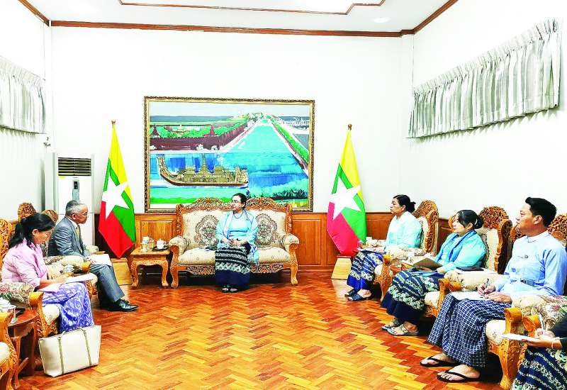 ရင်းနှီးမြှုပ်နှံမှုနှင့်နိုင်ငံခြားစီးပွားဆက်သွယ်ရေးဝန်ကြီးဌာန ပြည်ထောင်စုဝန်ကြီး ဒေါက်တာ ဝါဝါမောင်သည် ကုလသမဂ္ဂဖွံ့ဖြိုးမှုအစီအစဉ် (United Nations Development Programme- UNDP) ၏ မြန်မာနိုင်ငံဆိုင်ရာဌာနေ ကိုယ်စားလှယ်အသစ်ဖြစ်သူ Mr. Norimasa Shimo-mura အား ယနေ့နံနက်ပိုင်းတွင် အဆိုပါဝန်ကြီးဌာန ဧည့်ခန်းမ၌ လက်ခံတွေ့ဆုံသည်။